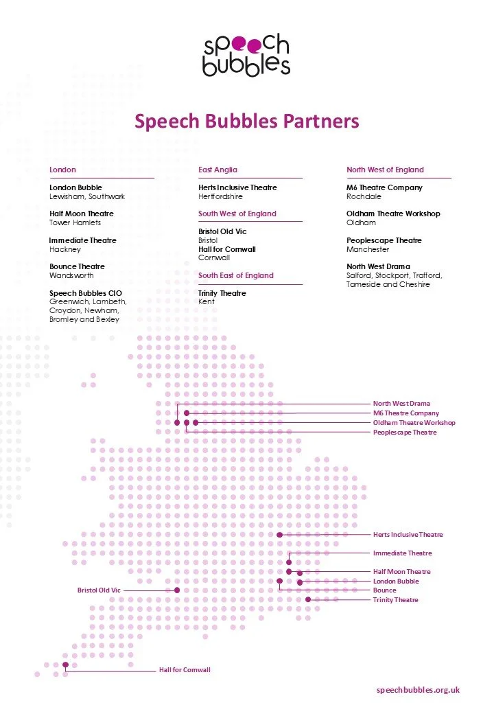 Speech Bubbles is delivered by theatre companies nationwide. Interested schools or practitioners can contact their local company using the details below or contact us directly.